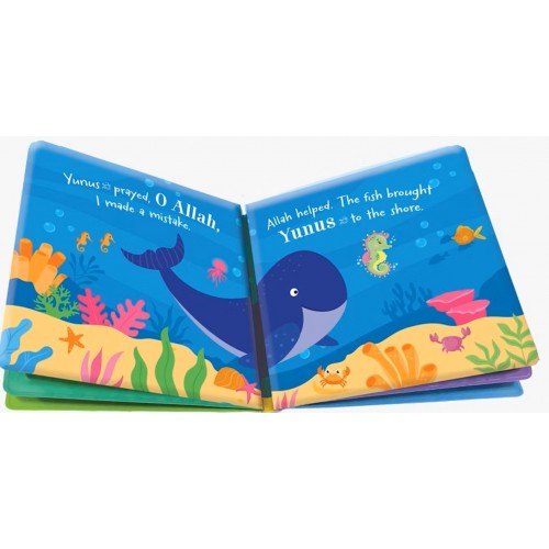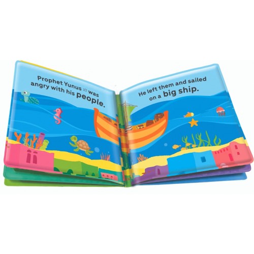 Dive into fun with this magical waterproof book made especially for babies! Splish, splash, and discover simple stories from the life of Prophet Yunus. With bright, colorful pictures and easy words, it’s perfect for little hands to hold and explore. When water touches the pages, vibrant colors and surprises come to life, adding extra excitement. This interactive book turns bath time into a joyful learning adventure. Designed for water play, it encourages curiosity and creativity in young minds. Babies can enjoy hearing stories while having fun in the tub or at the sink. The sturdy, waterproof pages make it safe and durable for repeated use. It’s a wonderful way to introduce early learning through play. Let this book spark imagination and a love for stories in every splash! Designed for infants as young as 6months.
